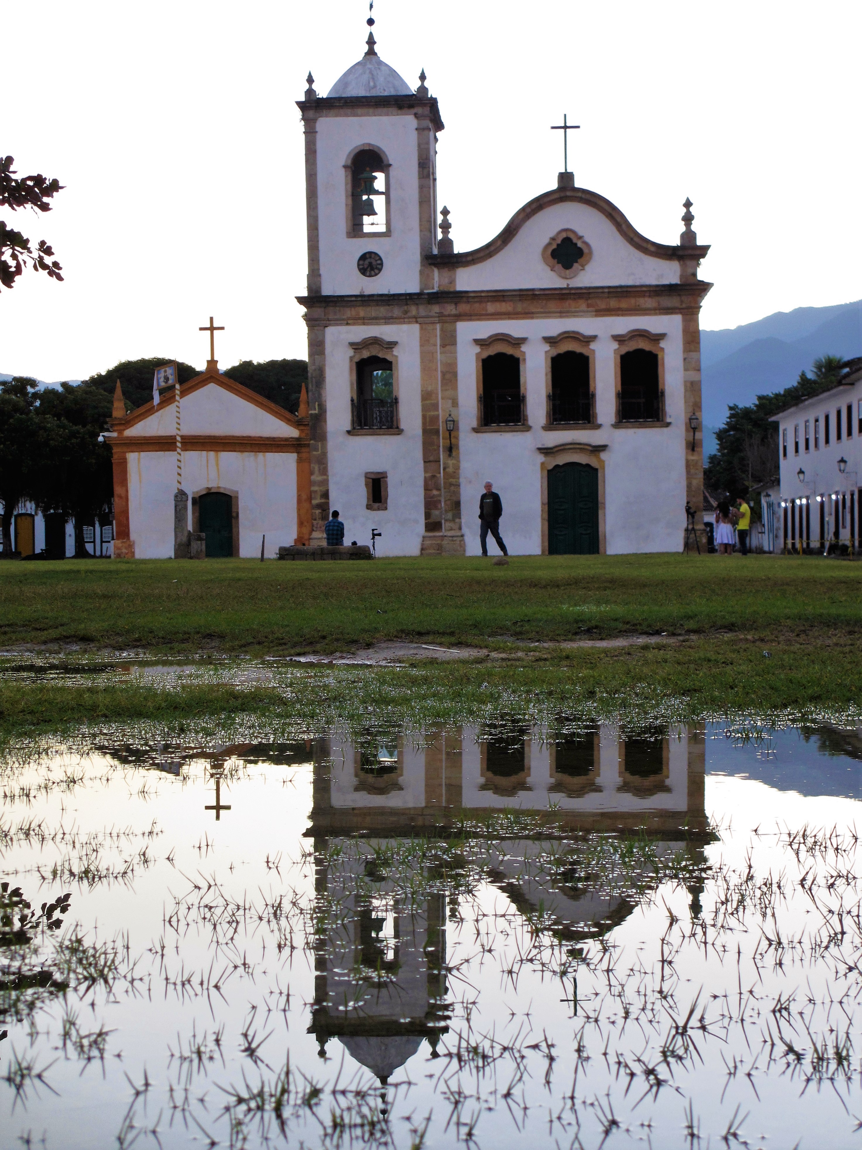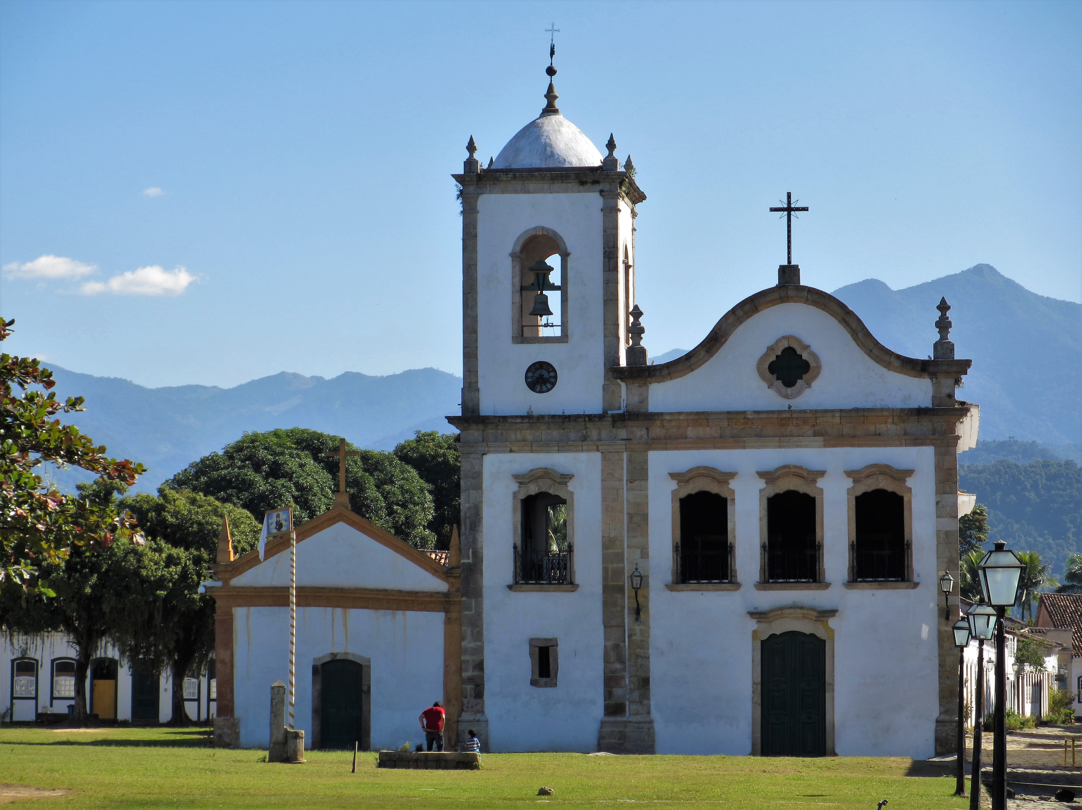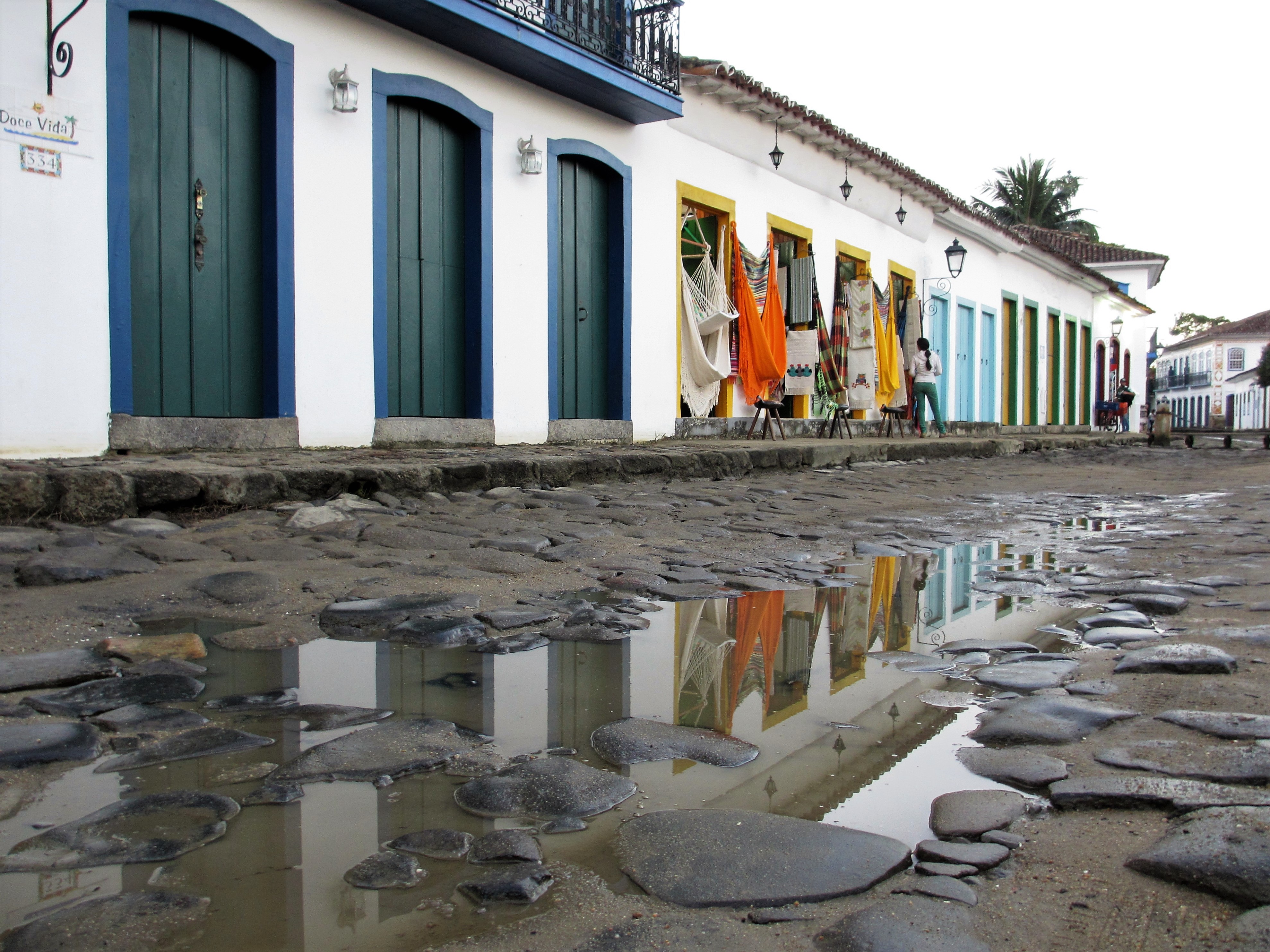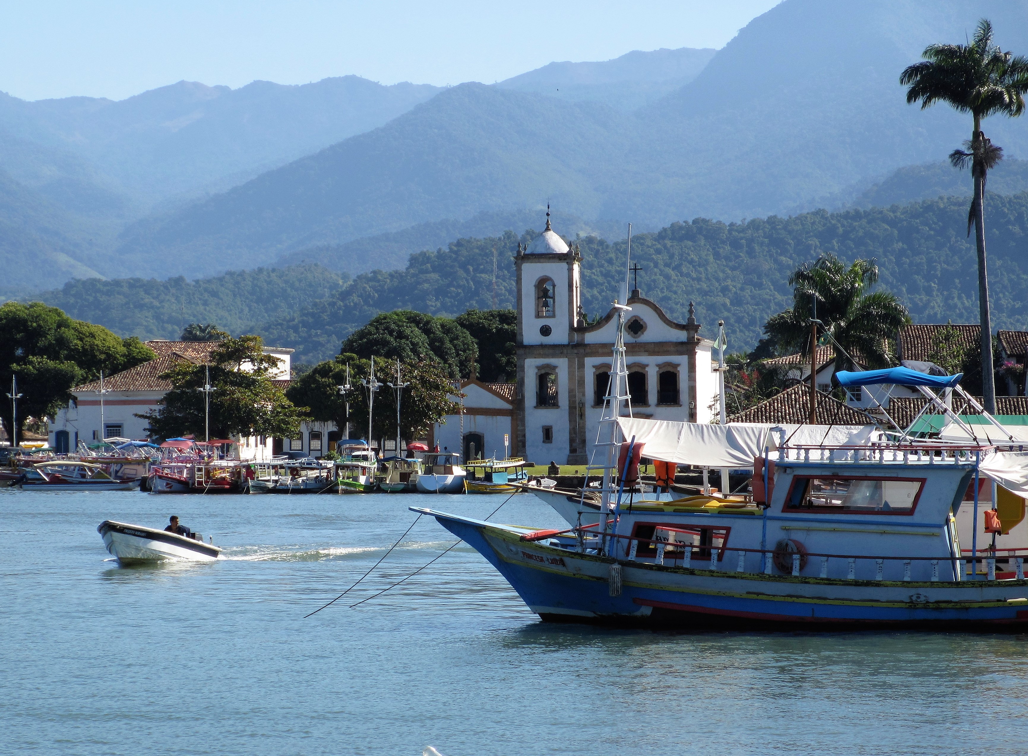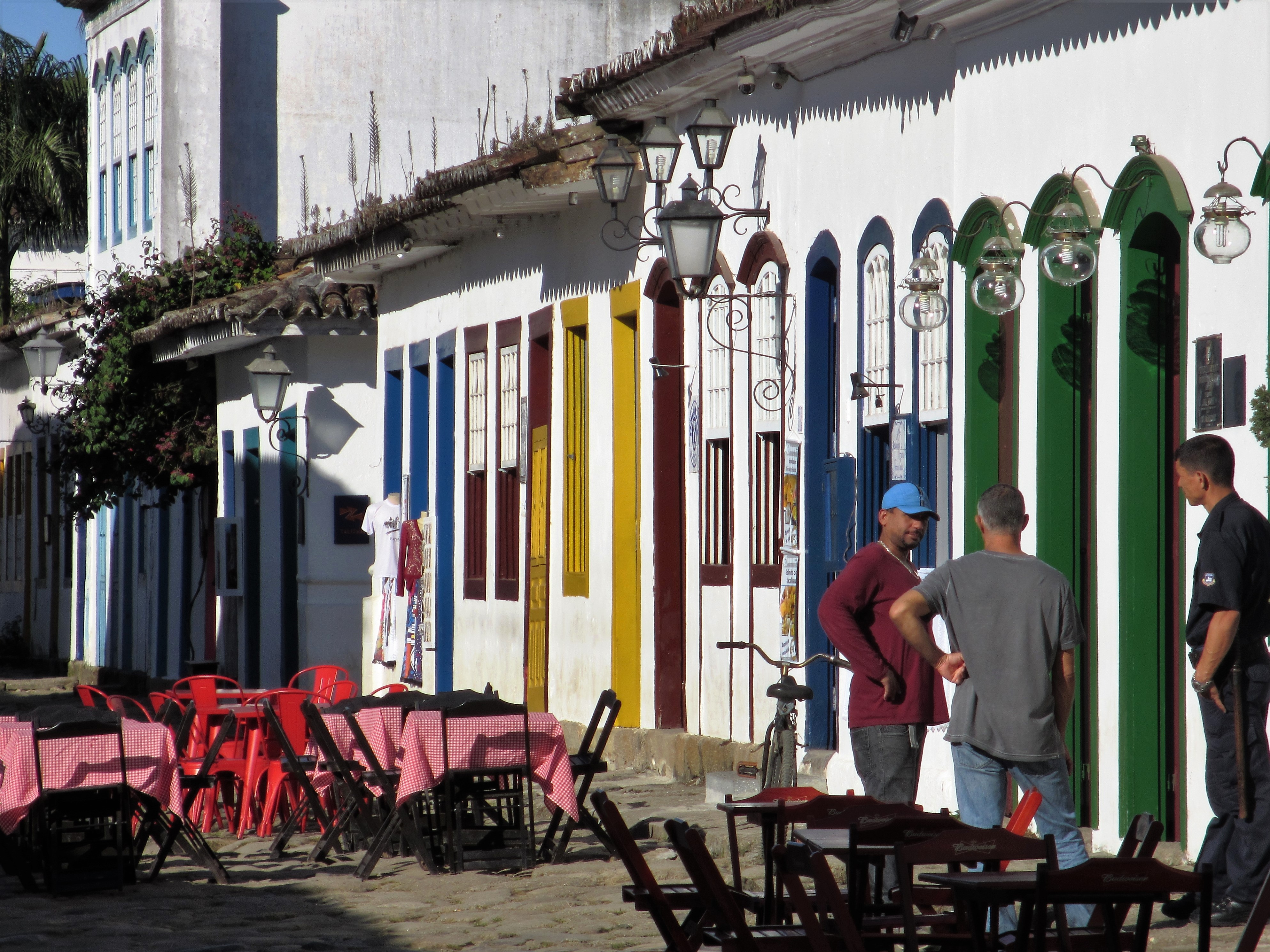 Czerwiec nie jest środkiem sezonu turystycznego w tej części Brazylii, więc nie mogliśmy narzekać na tłumy turystów. Zwiedziliśmy centrum i port przy ładnej pogodzie, którą w naszym klimacie porównałbym do ciepłego czerwcowego dnia, z temperaturą w okolicach 25 stopni. Paraty żyły swoim spokojnym życiem, na ulicach i w restauracjach nie było tłumów. Na obiad trafiliśmy do przyjemnej Casa Coupê Restaurante, gdzie obsługiwał nas bardzo sympatyczny kelner, z pochodzenia Urugwajczyk. Przyznał, że Paraty też bywają niebezpieczne. Zdarzyła mu się kiedyś „przygoda”, kiedy idąc do pracy przed południem ktoś przystawił mu spluwę do głowy i nasz kelner musiał oddać wszystko, co miał przy sobie… Witajcie w Brazylii! 🙂