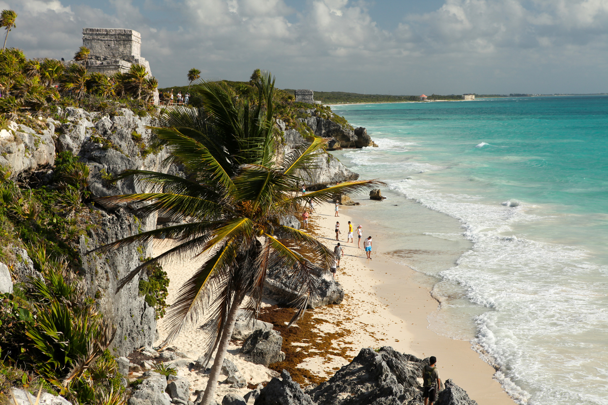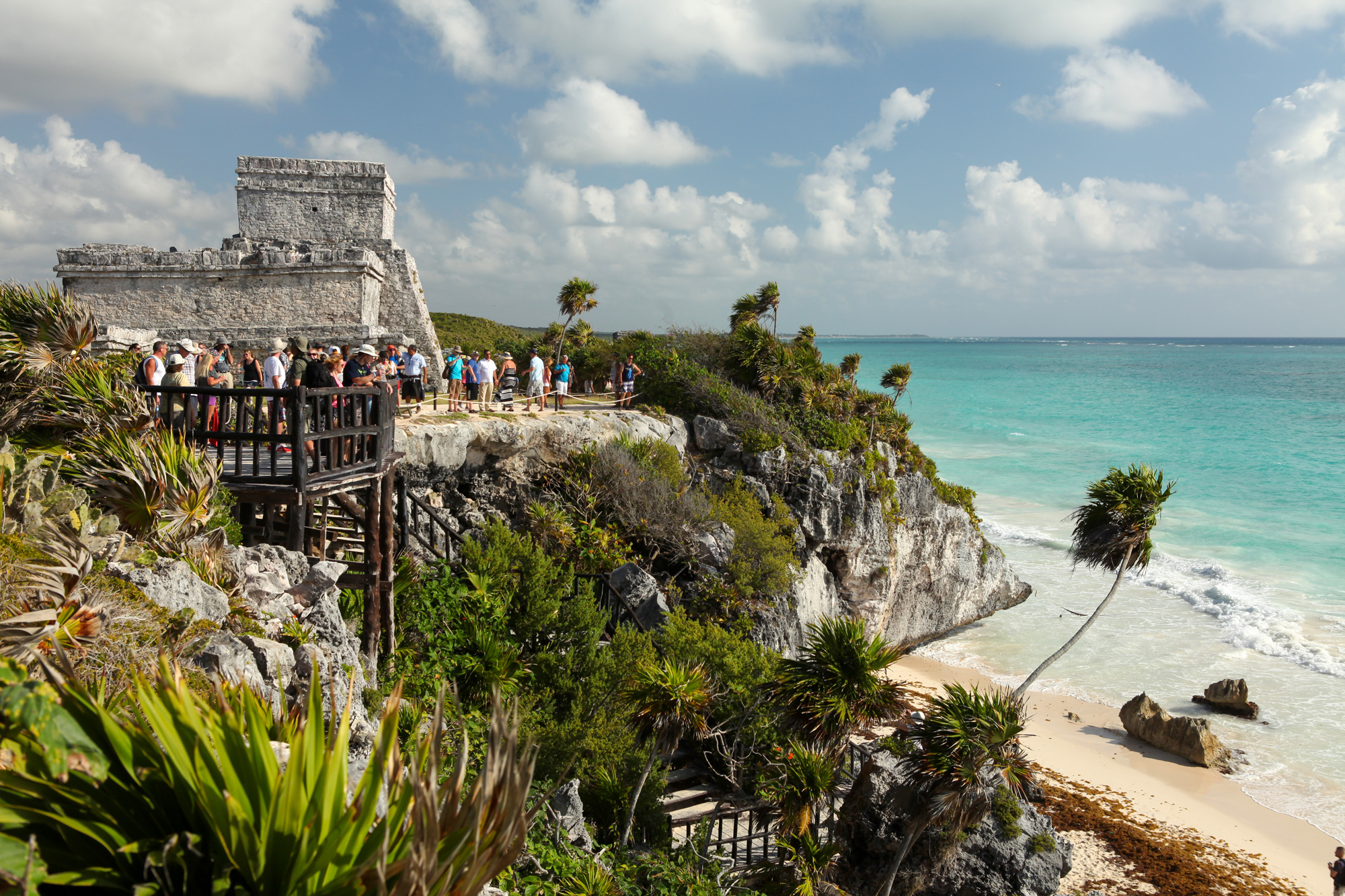 My zdecydowaliśmy się dla naszej 12-osobowej grupy wynająć bus z kierowcą na cały dzień za około 2300 pesos. Wcześnie rano pojechaliśmy na zwiedzanie Tulum, miasta „zstępujących bogów”, gdzie bujna tropikalna przyroda łączy się z biało-szarą architekturą. Tulum, dawną twierdzę Majów, otacza mur obronny z pięcioma bramami prowadzącymi do zespołu pałacu i świątyń (bilet wstępu kosztuje 70 pesos). Przepiękna turkusowa woda i ruiny murowanego pradawnego miasta spektakularnie położone na urwisku nad Morzem Karaibskim. Dzięki temu Tulum to miejsce najbardziej widowiskowe jeśli chodzi o fotografowanie. Bezpośrednio po zwiedzeniu ruin przeszliśmy na nieprzypadkowo tak nazwaną – Playa Paraiso. Kąpiel w takim miejscu to marzenie! Woda o unikalnej blado-lazurowej barwie, biały delikatny piasek, a przy plaży tradycyjne niewielkie bary z zimnym piwem. Nie dziwi fakt, że Playa Paraiso znalazła się na 21. miejscu rankingu najładniejszych plaż na świecie wg Travellers’ Choice portalu Tripadvisor w 2016 roku.