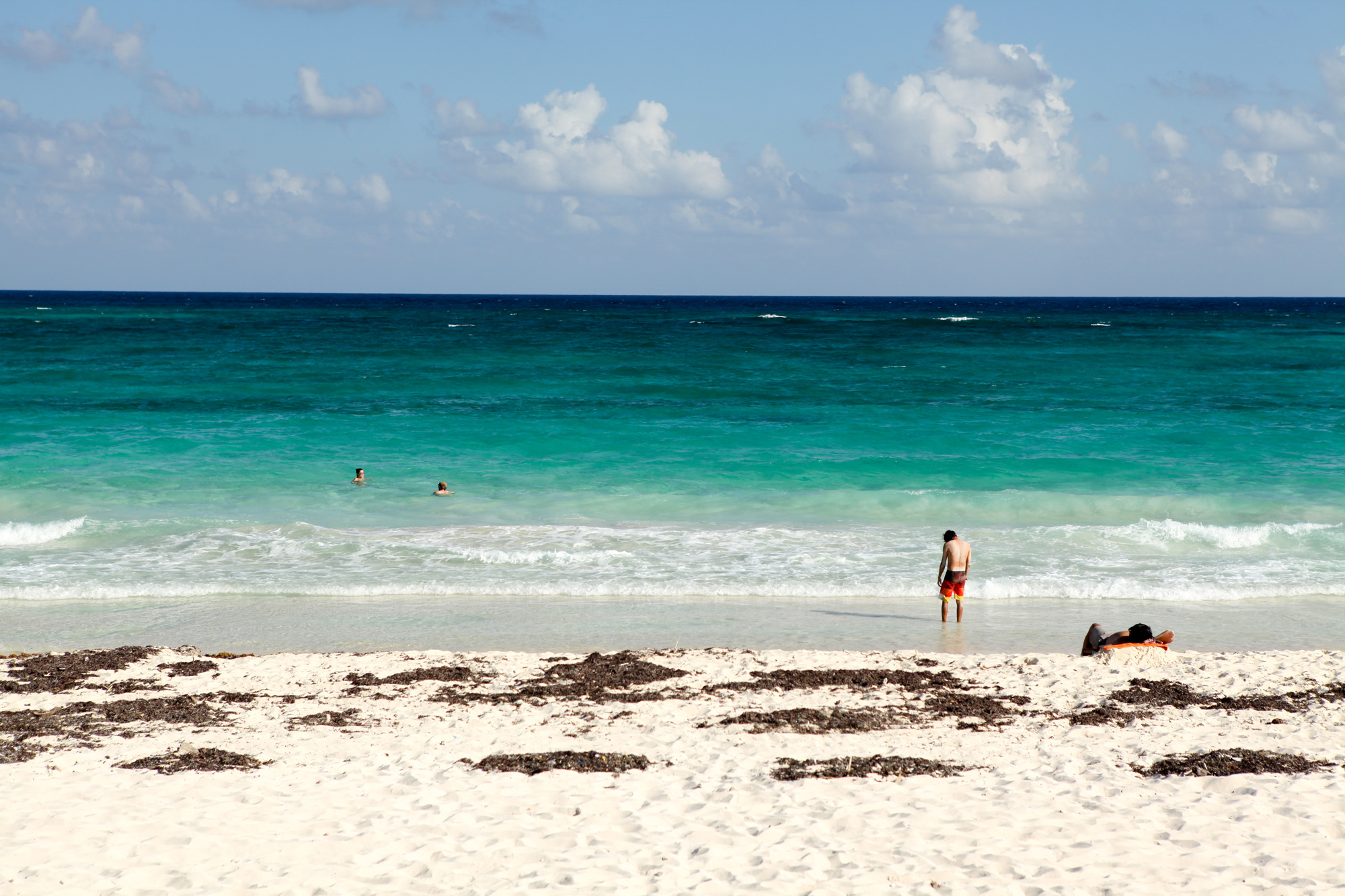 Często na plażach miejskich widać glony wyrzucone przez morze tzw. sargazo. Ostatnimi laty jest ich podobno coraz więcej zwłaszcza od grudnia do marca. Niektórzy twierdzą, że to przez zmiany klimatyczne, zanieczyszczenia morza. Miejskie plaże nie są jakieś szczególnie atrakcyjne. My znaleźliśmy swoje miejsce na dość ustronnej plaży na północnych obrzeżach miasta, na przedłużeniu Calle 60 Nte. Z tym, że nie ma tam dojścia bezpośrednio z miasta, trzeba przejść Av. CTM lub Calle 48 na plażę, a potem wzdłuż morza kilkaset metrów na północ mijając mały porcik, hotele i restauracje. Nie ma tu już żadnych barów, jest za to spokój i piękna, pusta, szeroka plaża. Trzeba oczywiście wcześniej zaopatrzyć się w przekąski, napoje i koniecznie balsam do opalania. Przyda się też parasol plażowy.