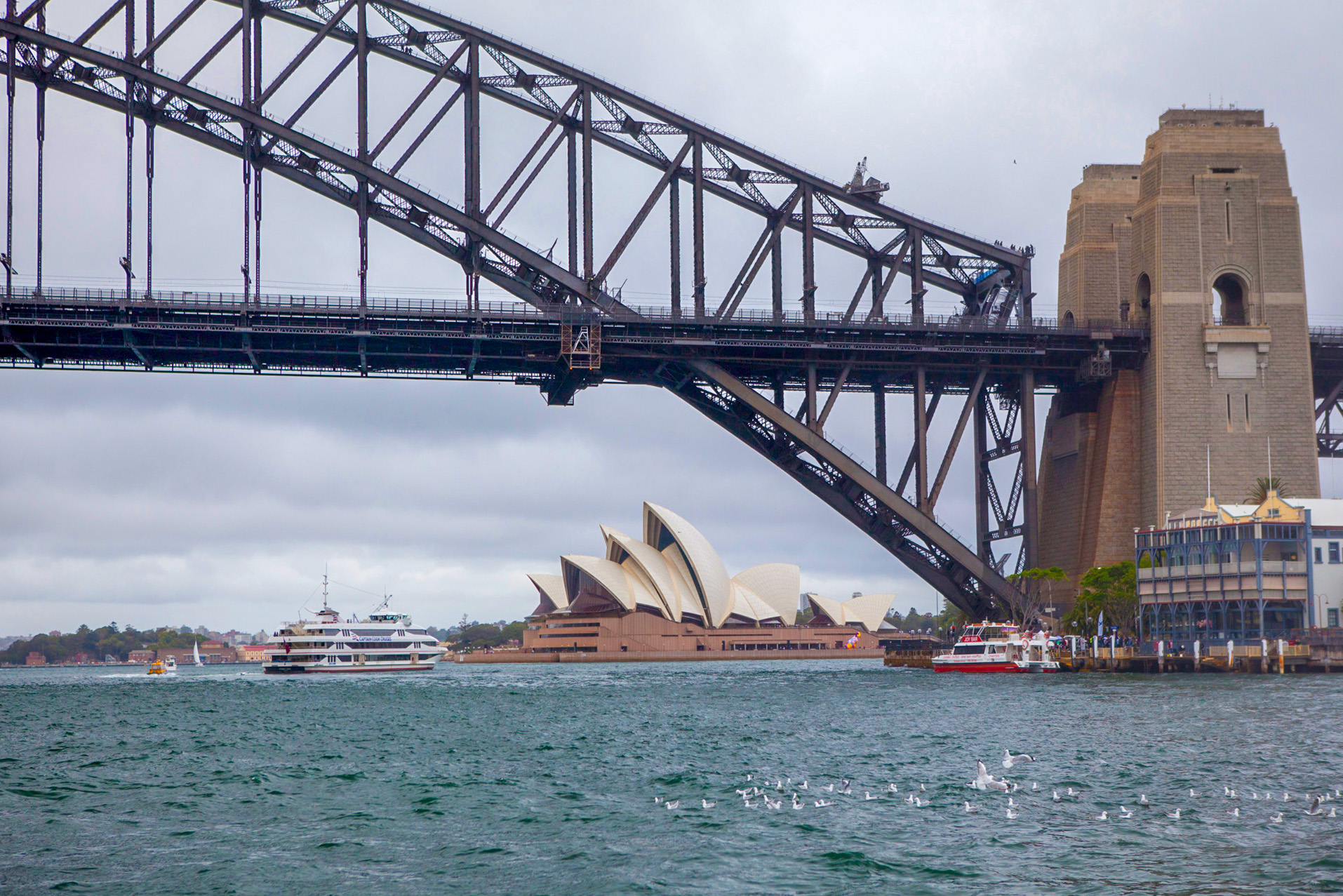 Nie sposób nie zauważyć drugiego znaku rozpoznawczego miasta, rozciągającego się nad zatoką Port Jackson mostu Sydney Harbour Bridge.