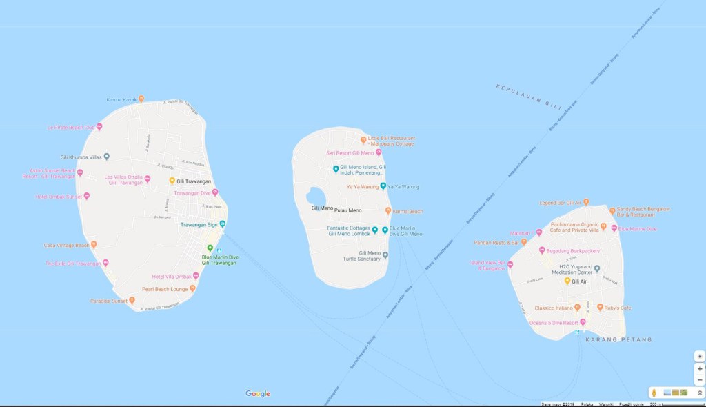 Po dwugodzinnej podróży nasz statek zacumował kilkadziesiąt metrów od plaży, a na ląd dotarliśmy na prymitywnej tratwie, razem z pozostałymi osobami i bagażami oznaczonymi nalepką Gili Meno. Już pierwszy kontakt z tą wysepką zachwycił nas: turkusowa woda, białe i puste plaże i żadnych samochodów! Popularnym środkiem transportu są tam rowery, a także Cidomo, czyli specyficzne riksze zaprzężone do niewielkich koników, zamiast taksówek. To taka specyficzna konna wersja tuk-tuka. Istnieje też wersja towarowa…