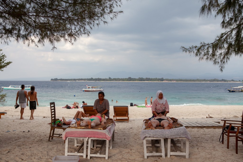 Cały czas jednak wracały do nas niepokojące myśli, szczególnie przed drugą częścią podróży, którą mieliśmy spędzić na malutkiej rajskiej wysepce Gili Meno. Archipelag wysepek leżących u wybrzeży wyspy Lombok mocno ucierpiał podczas ubiegłorocznych trzęsień. Na żadnej z nich nie ma znaczących wzniesień, a zabudowania są bardzo prymitywne. W przypadku pojawienia się tsunami możliwości ucieczki i schowania się przed niszczycielskim żywiołem są ograniczone.