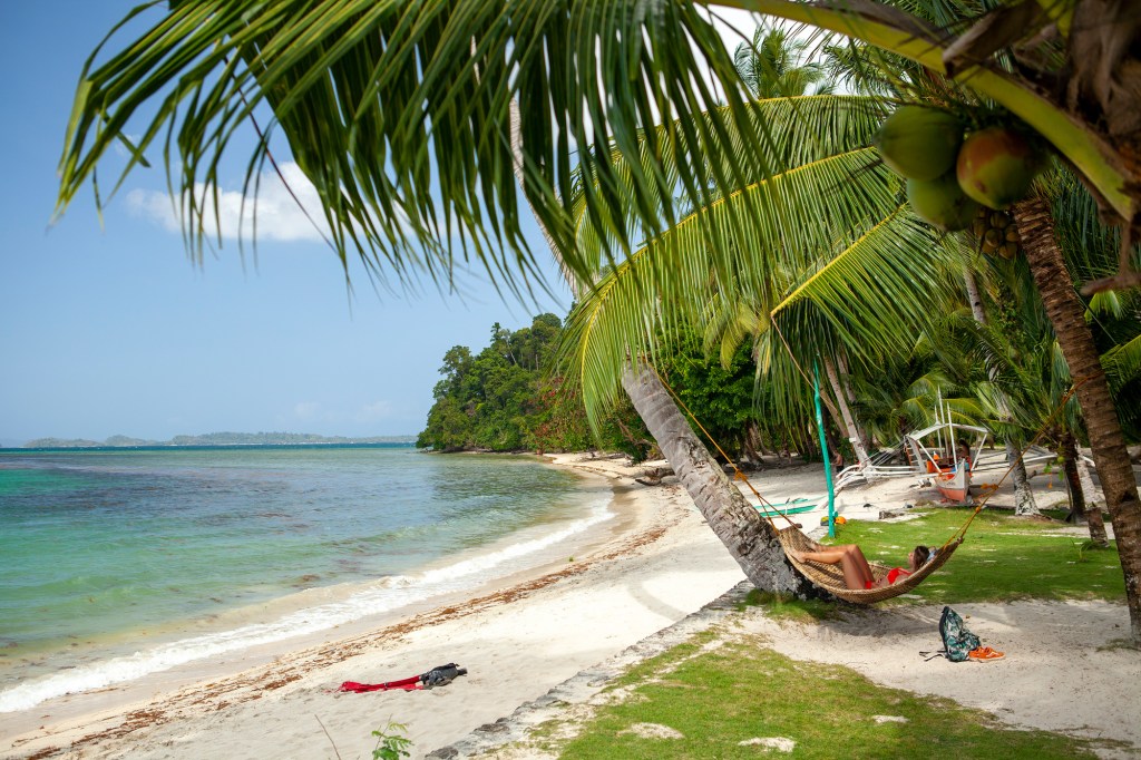 Po ponad trzygodzinnej trasie dotarliśmy wreszcie do celu – malowniczo rozsianych na plaży między palmami domków Besaga. Port Barton to mała i spokojna wioska rybacka położona na zachodnim wybrzeżu Palawanu. Żeby tu dotrzeć, trzeba odbić na zachód od głównej drogi biegnącej wschodnim wybrzeżem ze stolicy do El Nido. Problemy z elektrycznością nie należą tu do rzadkości, ale właśnie w prostocie nie skażonej jeszcze cywilizacją tkwi piękno i wyjątkowość tego miejsca. Zaletą Port Barton jest nie tylko przepiękna szeroka plaża, ale także bliskość rajskich małych wysepek, na które można się wybrać w ciągu dnia w ramach lokalnej atrakcji, tzw. island hopping. Baza noclegowa dopiero się rozwija, ale nam udało się namierzyć wspomniany już mały kompleks domków, który dysponuje też znaną w okolicy restauracją z pysznymi rybami i owocami morza.