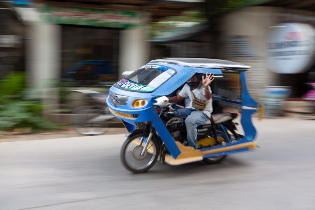 Tu należy się małe wyjaśnienie. Na Filipinach najbardziej popularnym środkiem komunikacji publicznej, a jednocześnie symbolem filipińskiej kultury jest tzw. Jeepney. Jest to połączenie samochodu terenowego z autobusem, z wieloma dekoracjami i jaskrawymi kolorami. Jeepneye powstały z przerobionych amerykańskich terenówek wojskowych pozostawionych na Filipinach po II wojnie światowej. To taka lokalna alternatywa dla autobusów miejskich. Natomiast tutejszą wersją taniej taksówki jest trycykl, czyli filipińska motoriksza. Ta swoista odmiana tuk-tuka to zwykły, najczęściej mocno wyeksploatowany motocykl z doczepioną z boku domowej roboty budką dla pasażerów, która mieści maksymalnie cztery osoby.