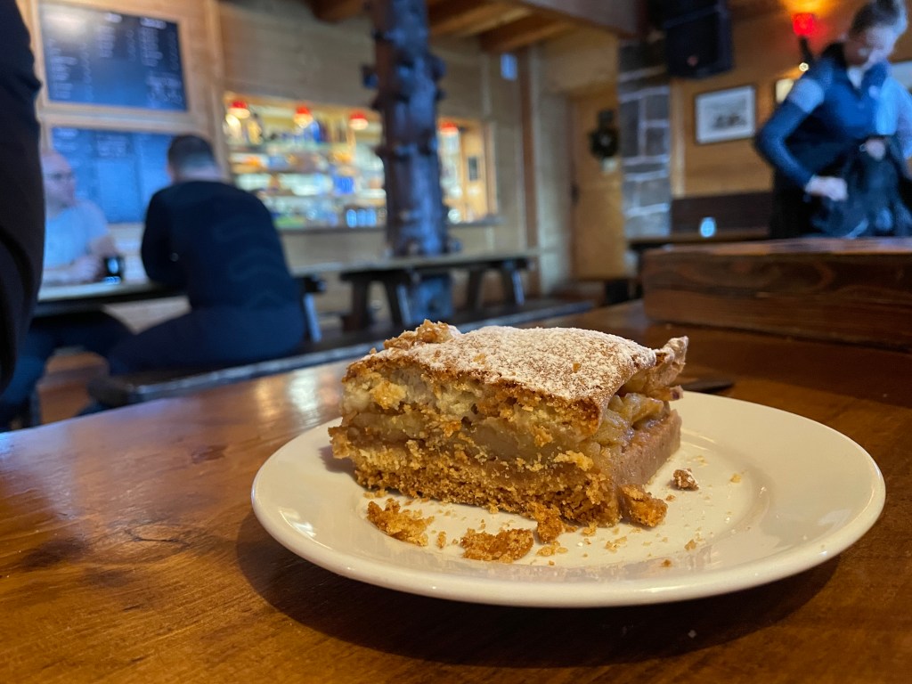 Schodząc dalej Ceprostradą podziwiamy Mnicha, Rysy, wyłaniający się Czarny Staw i wreszcie Morskie Oko. Wchodzimy wreszcie w zarośla kosodrzewiny, przecinamy owiane złą sławą, często lawiniaste żleby opadające do jeziora. Na tafli spora grupka ludzi gotowych poświęcić się dla upragnionego selfie. W schronisku też tłoczno, choć kolejka dość szybko idzie. Zamawiam bigos, Radek pomidorową, a na deser… kolejną szarlotkę tego dnia, a jakże.