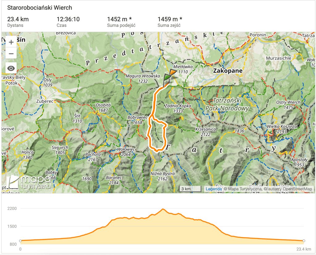 Z przełęczy jeszcze ostatnie podejście na wierzchołek Kończystego Wierchu, najniższego dwutysięcznika tatrzańskiego, który zdobyliśmy już rok temu, przed nieudanym podejściem na Starorobociański. Właśnie w czasie tego ostatniego podejścia dopada mnie kulminacja nienaturalnego spadku sił. Nigdy nie byłem co prawda górskim sprinterem, ale tym razem naprawdę czuję, że moje ciało odmawia posłuszeństwa. Zaczynam łączyć to, chyba sensownie, z przeziębieniem, którego od dłuższego czasu nie mogę się pozbyć. Pogoda wyśmienita, droga już zejściowa, a ja muszę co chwilę zatrzymywać się na odpoczynek i kolejny łyk herbaty albo wody. Jeszcze tylko Trzydniowiański Wierch, grzbiet Kulawca i ostre zejście ścieżką przez las o tysiącu zakrętów, a potem żlebem do Polany Trzydniówki. Na koniec oczywiście trzeba jeszcze przedreptać dużą część Doliny Chochołowskiej, co tym razem ciągnie się niemiłosiernie. Te kilka kilometrów dłuży się w nieskończoność, a ja walczę o każde sto metrów. Do parkingu dochodzimy już po zmroku, po ponad dwunastogodzinnej akcji górskiej.