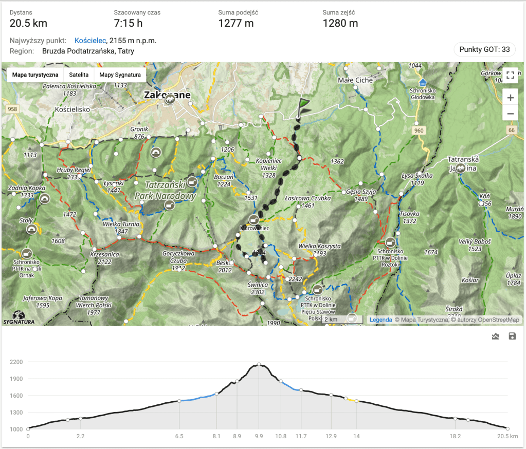 2.11.2023 :: Brzeziny – Dolina Suchej Wody – Hala Gąsienicowa – Czarny Staw Gąsienicowy – Karb – Kościelec – Dolina Zielona Gąsienicowa – Brzeziny.